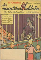 Der muntere BalduinWerbekinderzeitungEine lustige Kinderzeitung 1931; weiterer Verlauf nicht bekannt Lithographische Kunstanstalt und Buchdruckerei A. Reisser's Nfg. (Dr. Kuzel & Schneeweiß) Wien Preisaufdruck: 10g. Bild: Cover mit Werbefeld |
