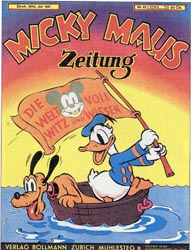 1936/37 Verlag: Bollmann; Zürich Es erschienen 18 Nummern Ein interessanter Versuch Micky Maus und andere Disney-Figuren im damals zeitgemäßen Kinderzeitungsformat zu vermarkten. Sehr viel Werbung Die Zeit war dafür allerdings noch nicht reif und der zweite Weltkrieg verhinderte weitere solche Versuche im deutschsprachigen Raum bis Anfang der 50er. |
