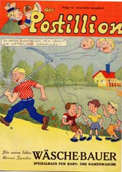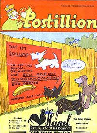 Die vom Verlag Moderne Welt, Berlin herausgegebene Werbekinderzeitung 'Postillion' war ursprünglich eine völlig eigenständige Zeitschrift, die aus mir nicht bekannten Gründen vmtl. 1939 vom Verlag Steisberg übernommen und inhaltlich der bei Steinsberg erscheinenden Zeitschrift 'Papagei' angeglichen wurde. |