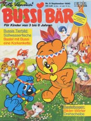 Bussi Bär1967;erscheint nochVerlagsunion Erich Pabel-Arthur Moewig Diese von Rolf Kauka geschaffene Zeitschrift vereinigt alle traditionellen Elemente einer Kinderzeitung in sich: Geschichten, Verserzählungen, Rätsel, Bastelbögen, Bildgeschichten (freilich keine Slapstickgeschichten wie in den frühen Kinderzeitungen), Wissenswertes und viele bunte Bilder. Daneben werden in spielerischer Form Grundbegriffe des Lesens/Schreibens und des Rechnens vermittelt. |