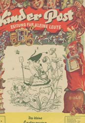 Kinderpost1947 bis 1955Presse-Verlag "Saarbrücker Zeitung" Saarbrücken Eine ganz typische, schön gemachte Kinderzeitung (nicht zu verwechseln mit der gleichzeitig in Österreich erscheinenden 'Kinderpost'), die auch insoferne von Interesse ist, als sie bereits 1950 Disney- Material brachte. Vgl.Comics und Bildgeschichten |