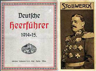 | Oben zwei der Kriegspropaganda zuzurechnende Sammelbilderalben vom Beginn des ersten Weltkrieges. | ||