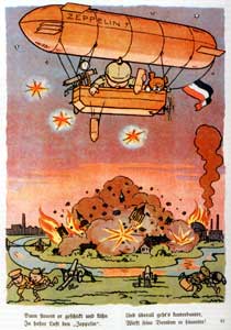 Der Weltkrieg 1914 In Bildern und kurzen Texten werden deutsche Kriegserfolge geschildert.zB.: Österreichische Motorbatterien beschießen Namur, Schlacht bei Tannenberg, Zeppelin über Antwerpen (Abbildung rechts), Deutsches U-Boot bringt den russ. Kreuzer Pallada zum Sinken usw (um 1915). |