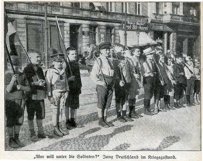 Ältere Kinder als unmittelbare Zielgruppe der Propaganda: Ältere Kinder werden durch die Propaganda direkt angesprochen und darauf vorbereitet, selbst aktiv zum Erreichen der Kriegsziele beizutragen. Beispiele dafür finden wir gleichfalls in der Jugendliteratur des ersten Weltkrieges Die Situation vor Ausbruch des Ersten Weltkrieges
