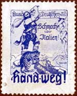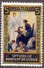 Oben Abbildungen von sogenannten Reklamemarken mit Kriegspropaganda (um 1915). Die letzte in der Reihe eignete sich für Todesanzeigen. |