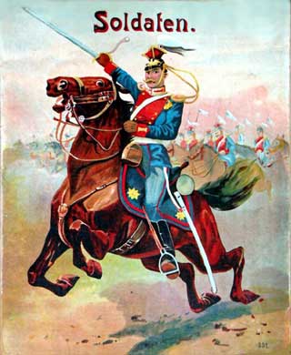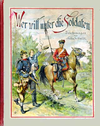 In der Zeit von etwa 1880 bis 1914, also in Friedenszeiten, waren Soldatenbilderbücher, in denen verbunden mit einer deutlich spürbaren Kriegsbereitschaft der Eintritt in das Heer des Kaisers für Knaben als selbstverständliches und erstrebenswerte Ziel propagiert wurde, ein fester Bestandteil der Kinderbuchszene. |