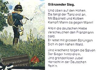 Oben: Im Feindesland, Bilderbuch, Verlag von Jos. Scholz Mainz, Verse