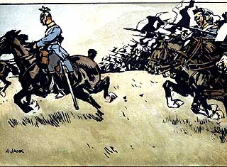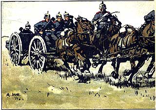 Abbildung oben: Illustration zu einem Artikel 'Die Jugend in Waffen' aus der Kinderzeitung Das Blatt der Kinder (Beilage zum Blatt der Hausfrau), Verlag Ullstein, vom 6. September 1914 |