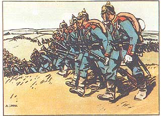 Es wird berichtet, dass zu Beginn des Krieges eine große Kriegbegeisterung herrschte. Das stimmt sicher nur zum Teil. Denn bei solchen Anlässen werden wohl nur die wahrgenommen, die offen und spektakulär ihrer Beigeisterung Ausdruck verleihen und man erinnert sich ihrer in der Geschichtsschreibung. Jene aber, die es an der nötigen patriotischen Begeisterung haben mangeln lassen, und die schweigend und sorgenvoll der Dinge harrten, die da auf sie zukamen, verliert man aus den Augen, so zahlreich sie auch gewesen sein mögen. |